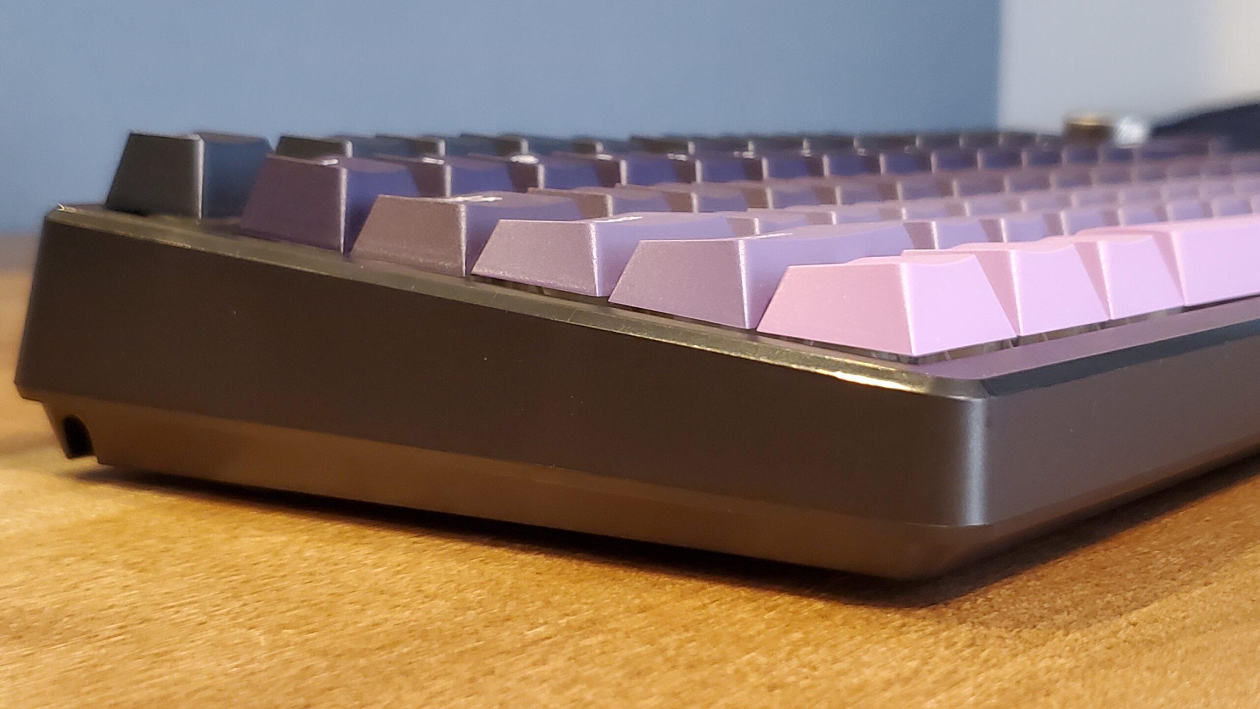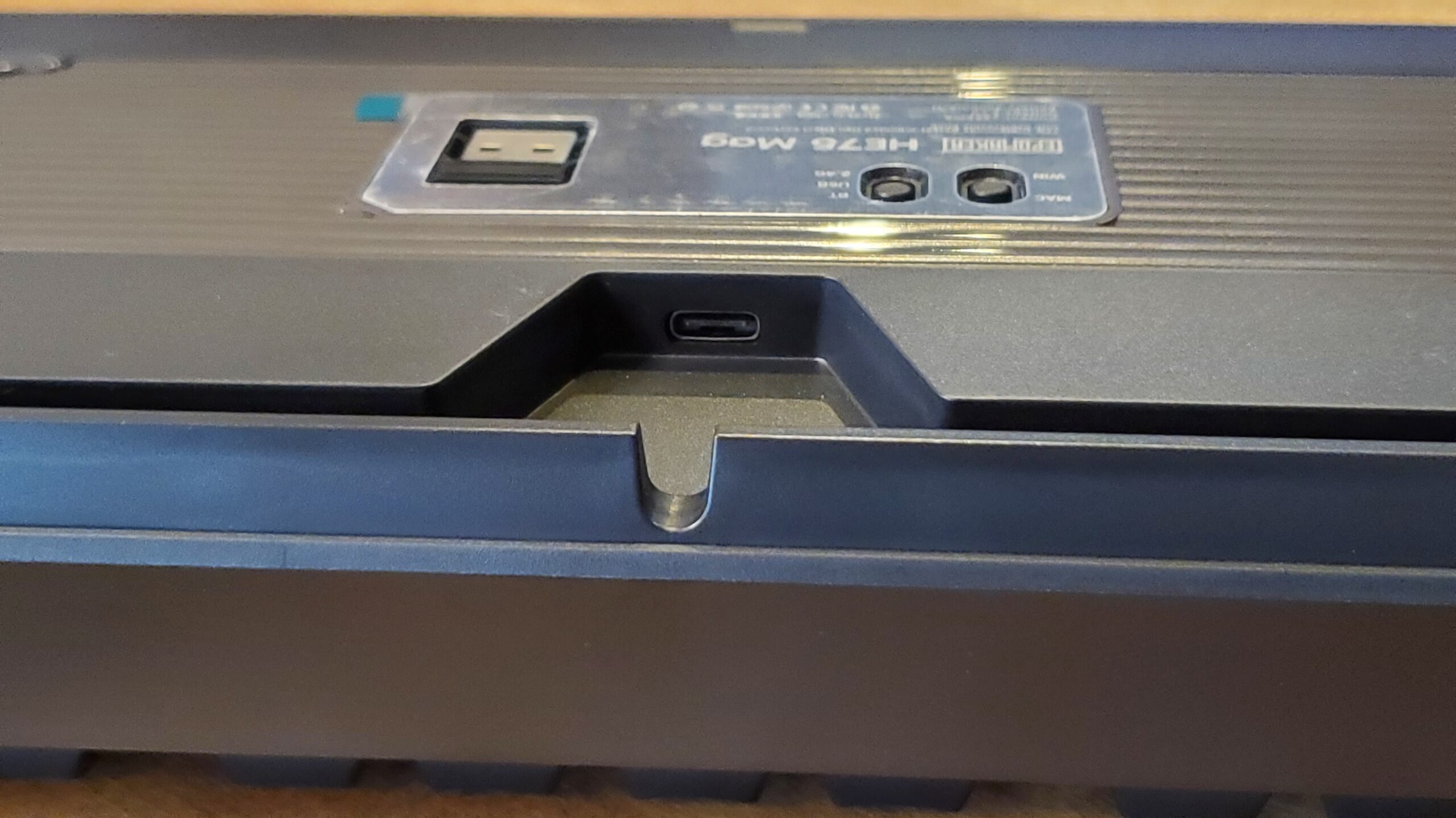 「HE75 MAG」はテンキーレスよりさらに省スペースな75%レイアウトを採用していて、フレーム部分もスッキリと仕上がっています。狭いデスク環境でも使いやすく、マウス操作のスペースを多めに確保できるのがうれしいところです。