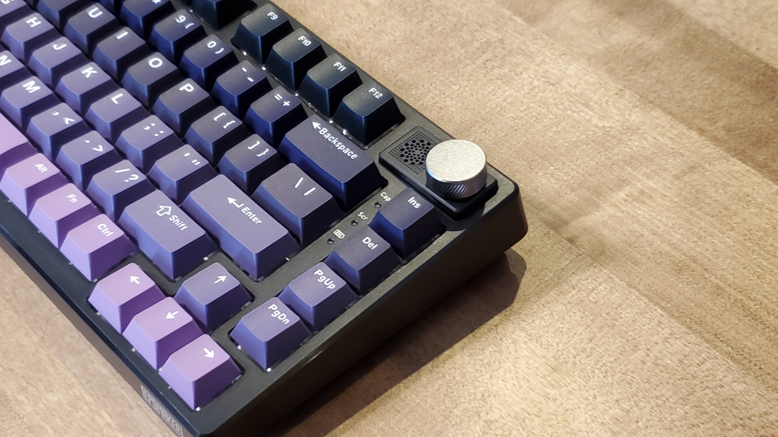 本体はアルミを一部に使用した堅牢さと、チープさを抑えたプラスチックパーツによるコストダウンをうまく両立していて、触れたときの質感も上々です。見た目はシンプルながら、キーボード上部に搭載されたノブとその横にある花火のライティングが程よいアクセントとなり、メディアコントロールや音量調整にも便利に使えます。