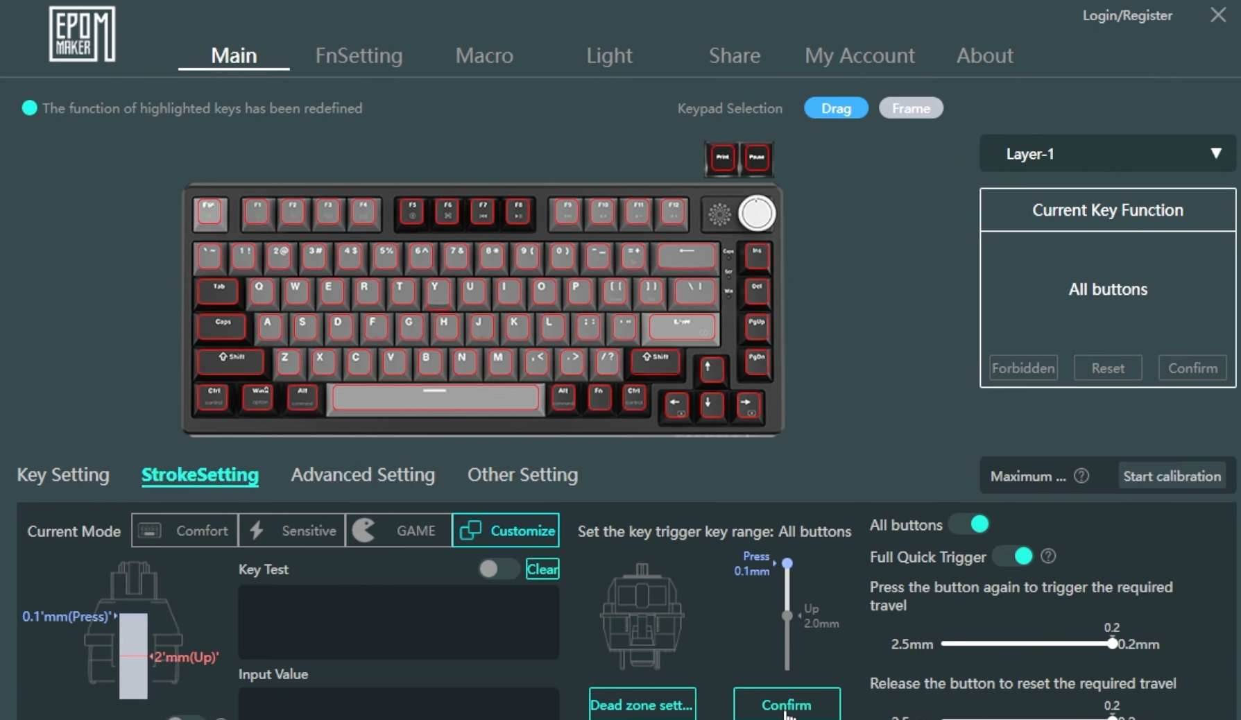 磁気式スイッチとラピッドトリガーの組み合わせにより、キー入力のレスポンスがとても良いです。反応速度が求められるゲームシーンで大きなアドバンテージを得られます。 - 高いカスタマイズ性