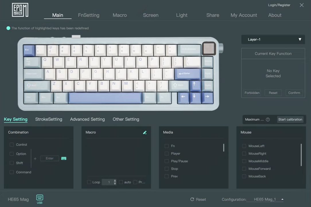 専用の「Epomaker Driver」というソフトウェアで機能のカスタマイズが可能です。