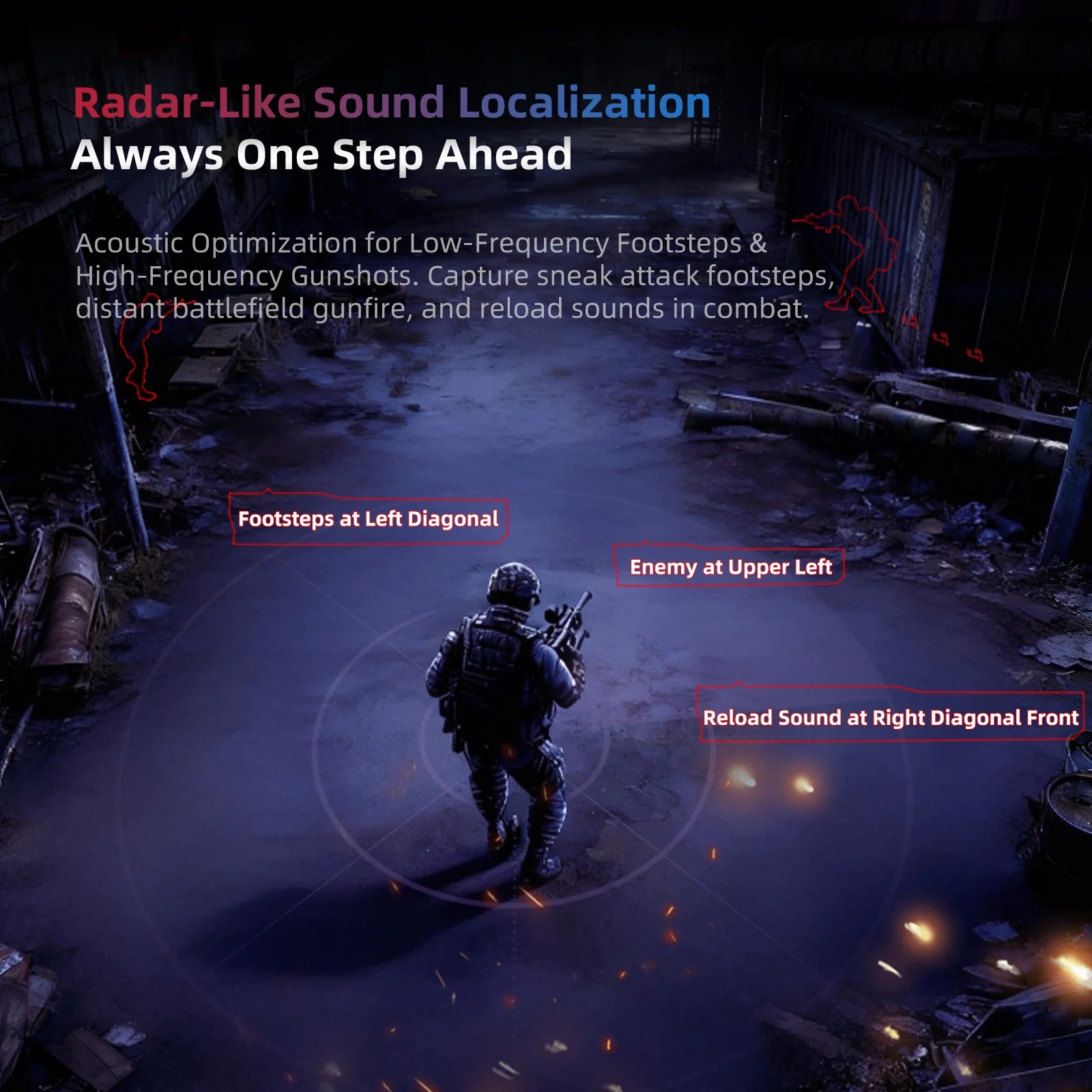 敵の足音や銃声の位置を正確に把握でき、反応速度が向上。正確な定位によりゲームプレイの質が改善します。