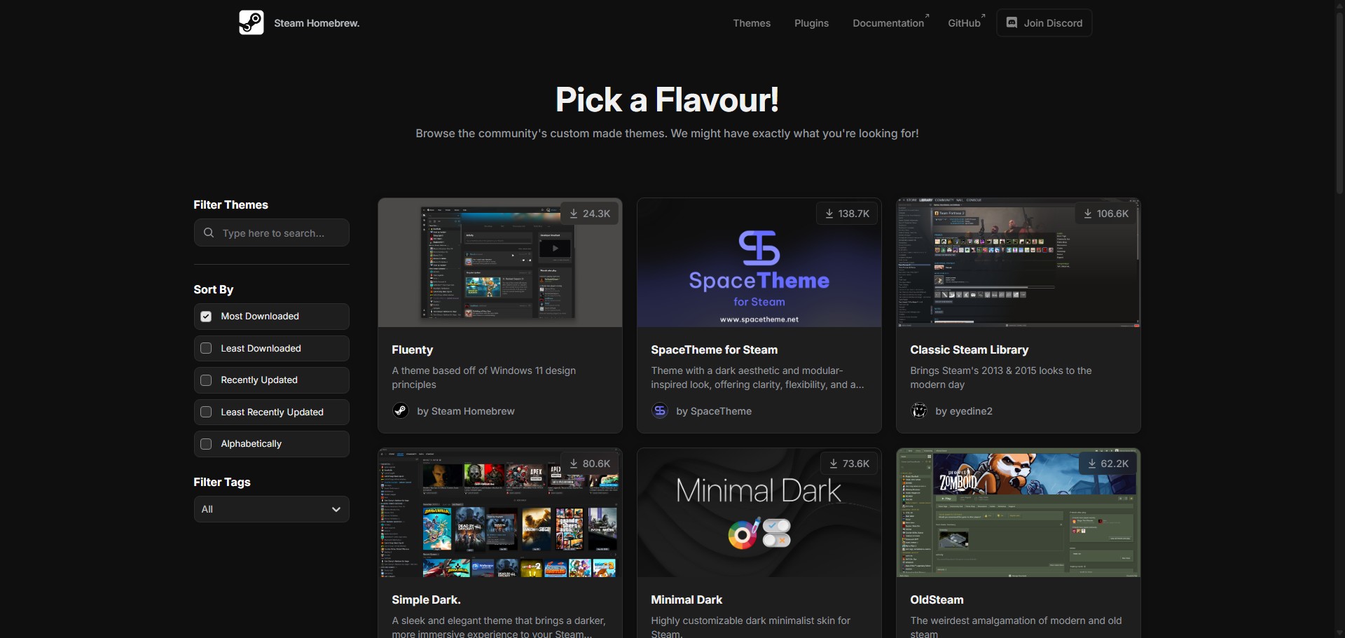 3. 公式サイトのテーマページ(steambrew.app/themes)から好みのテーマを選択する