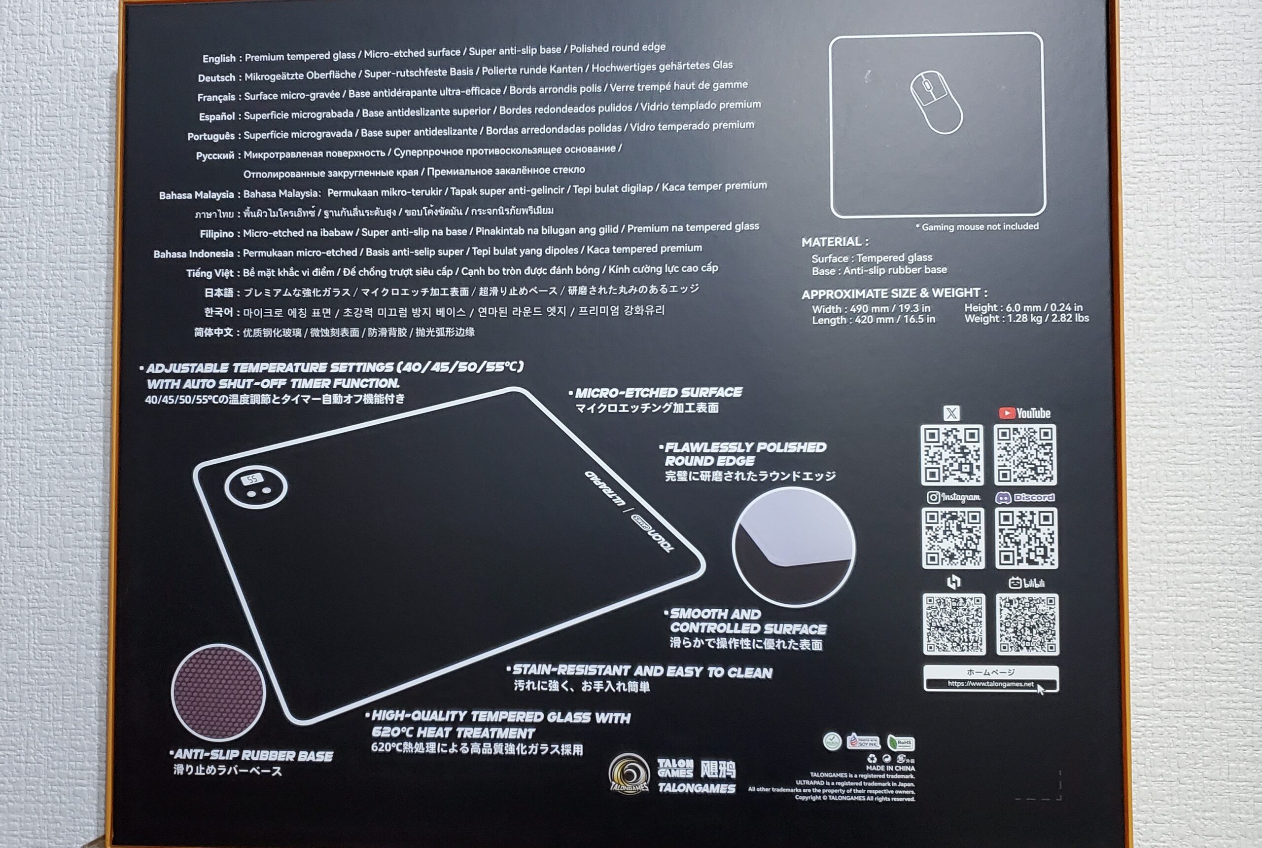 【製品レビュー】TALONGAMES 加熱ガラスマウスパッド ~世界初、冬の冷えを解消する革新的ヒーター搭載~