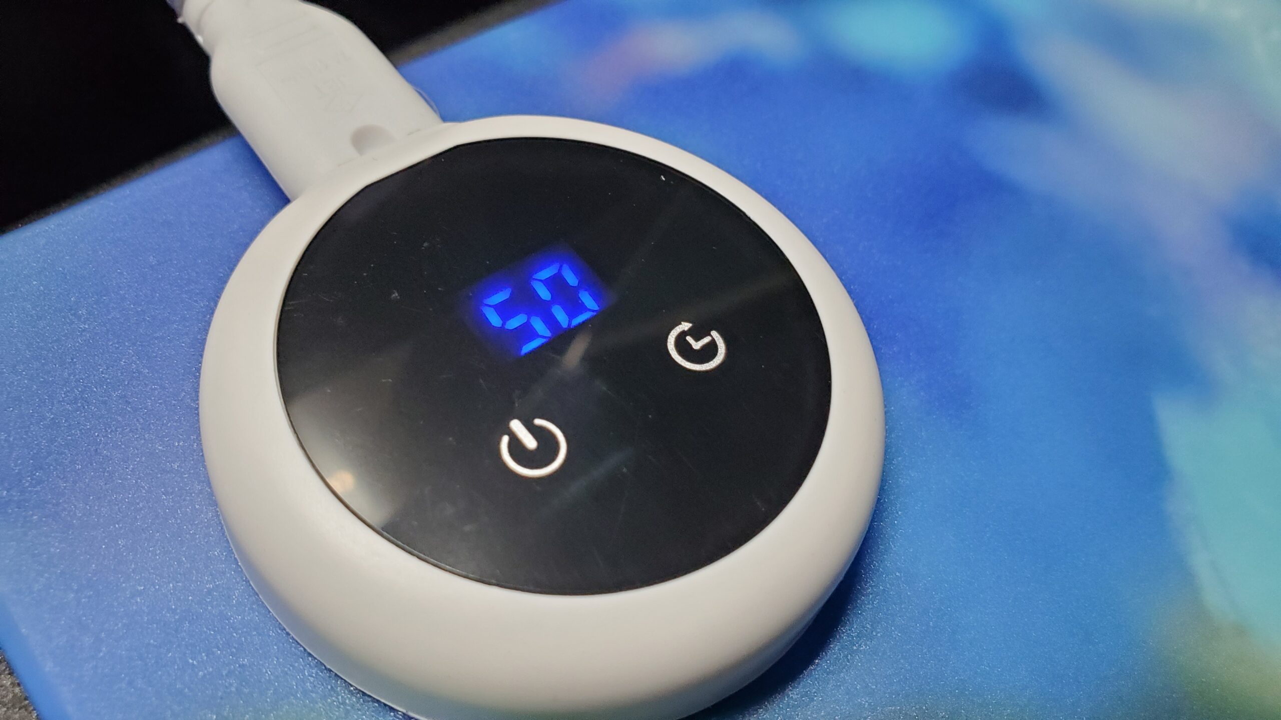 左上のコントローラーには電源ボタンとタイマーボタンを搭載。タイマーは1/2/3/4時間の4段階設定が可能で、自動電源オフ機能により消し忘れを防止。変圧機能および過熱防止機能も搭載し、安全性を徹底しています。